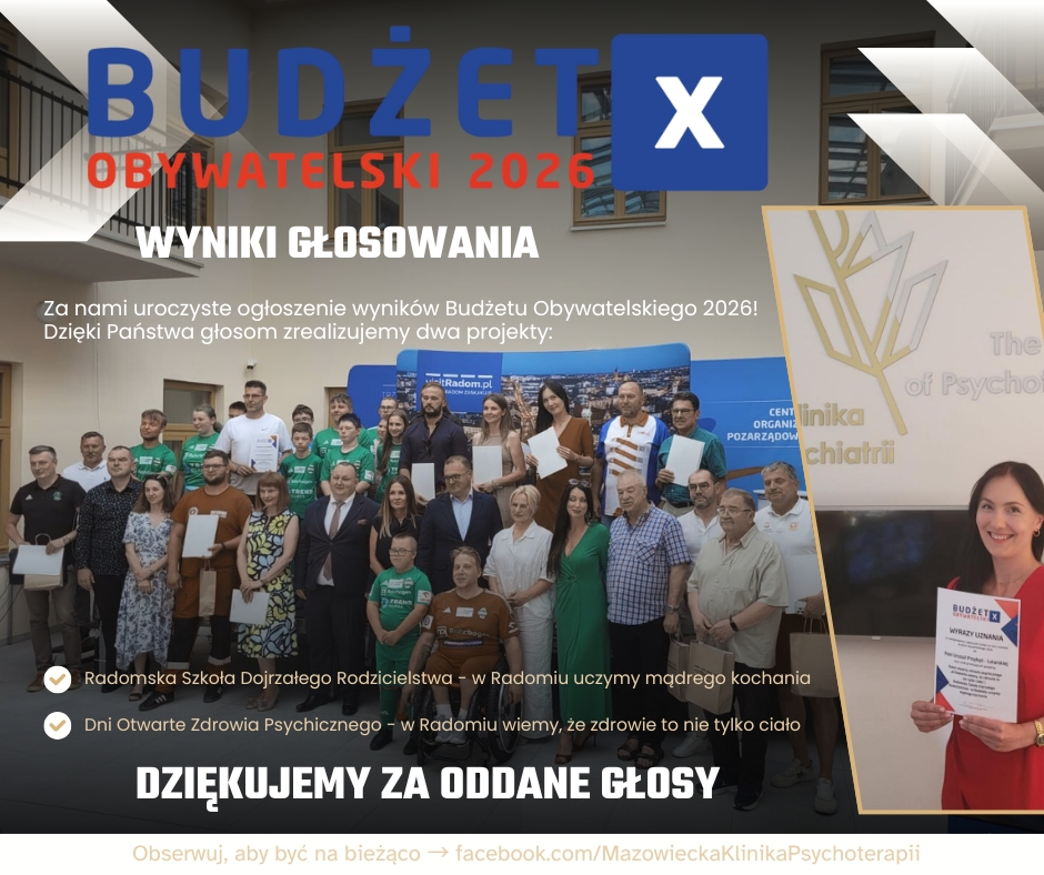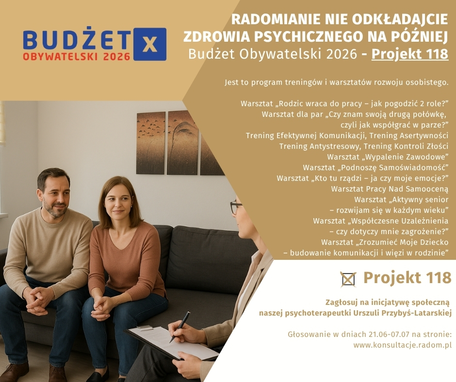 19.06.2025 Dobry psychoterapeuta w Radomiu przedstawia projekt nr 118 w Ramach Budżetu Obywatelskiego 2026