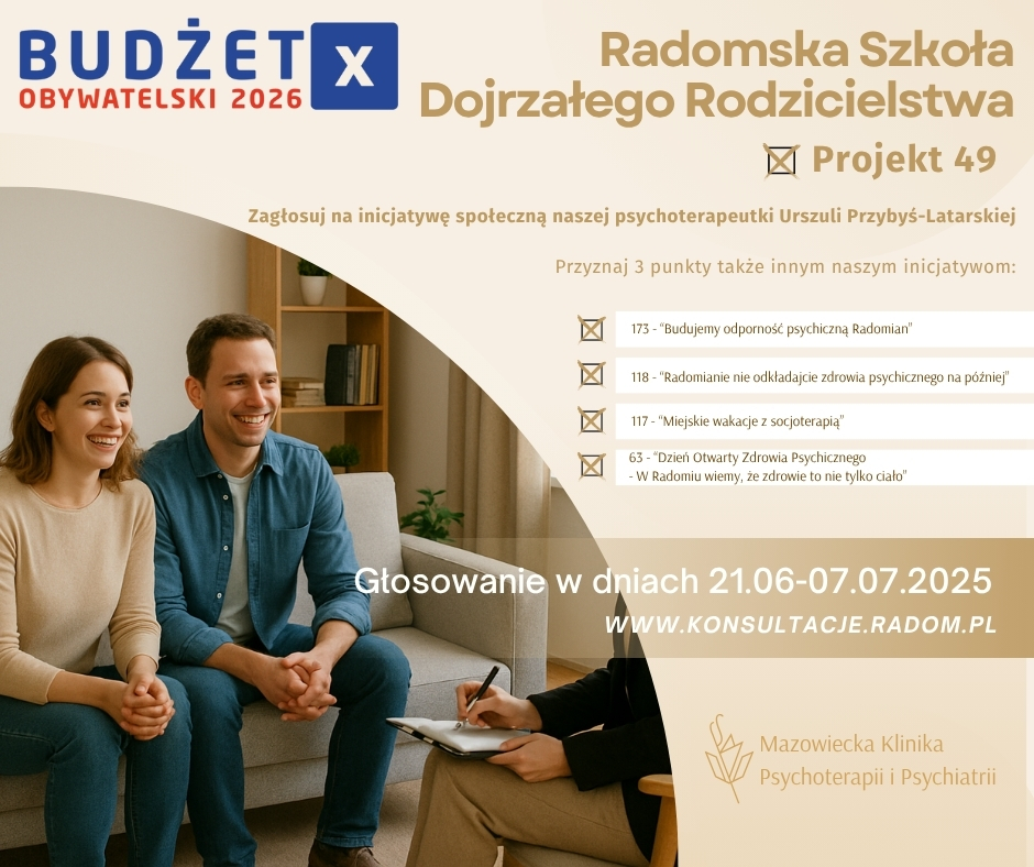 01.07.2025 Dobry psychoterapeuta w Radomiu przedstawia projekt Szkołę Dojrzałego Rodzicielstwa w Ramach Budżetu Obywatelskiego 2026
